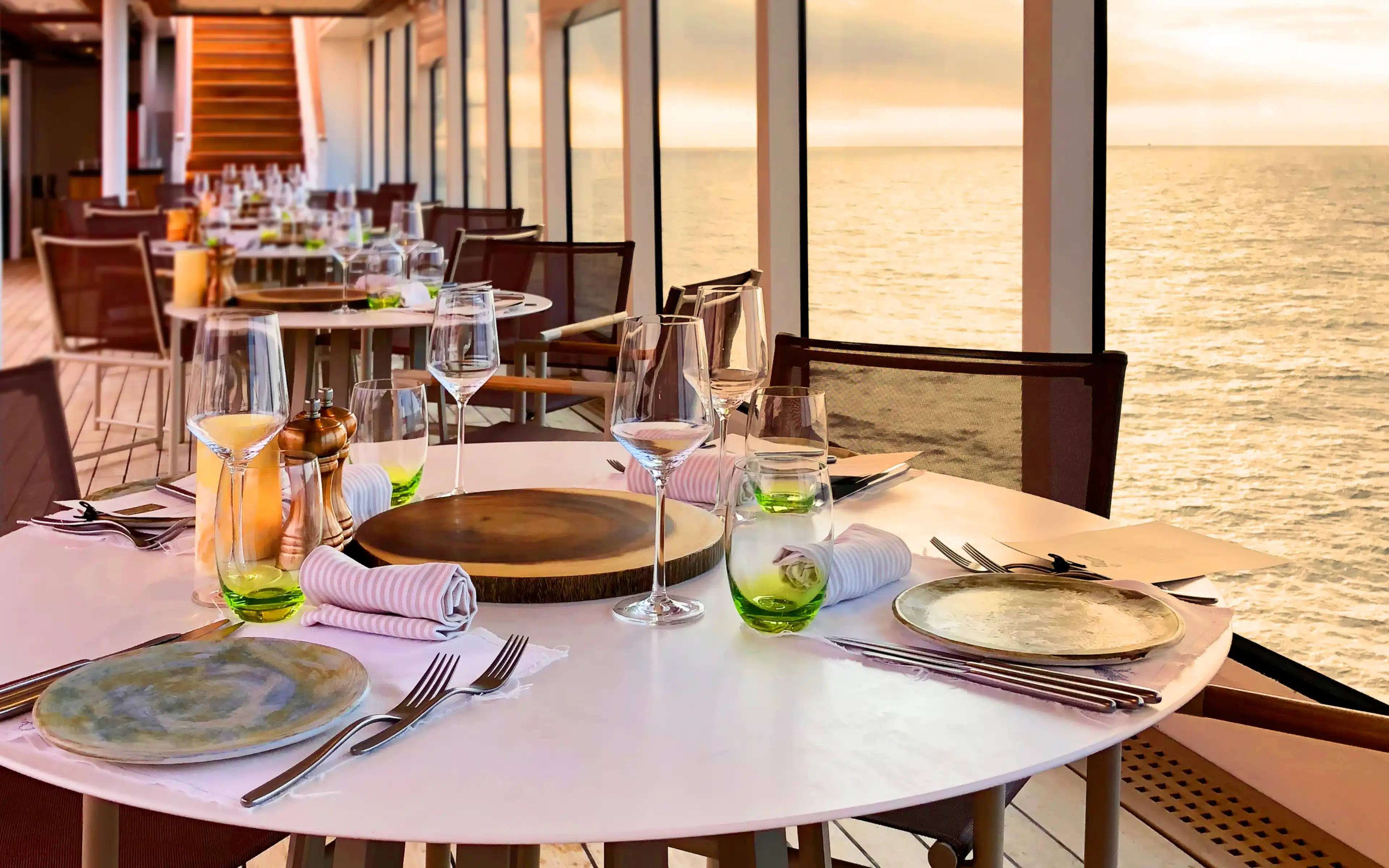 In Sushi the master chefs present exquisite sashimi, maki and tasty bento boxes. Earth & Ocean at the Patio is a newer addition to the Seabourn dining scene. It brings fine dining to the poolside, so you can enjoy gentle ocean breezes and spectacular sunsets.